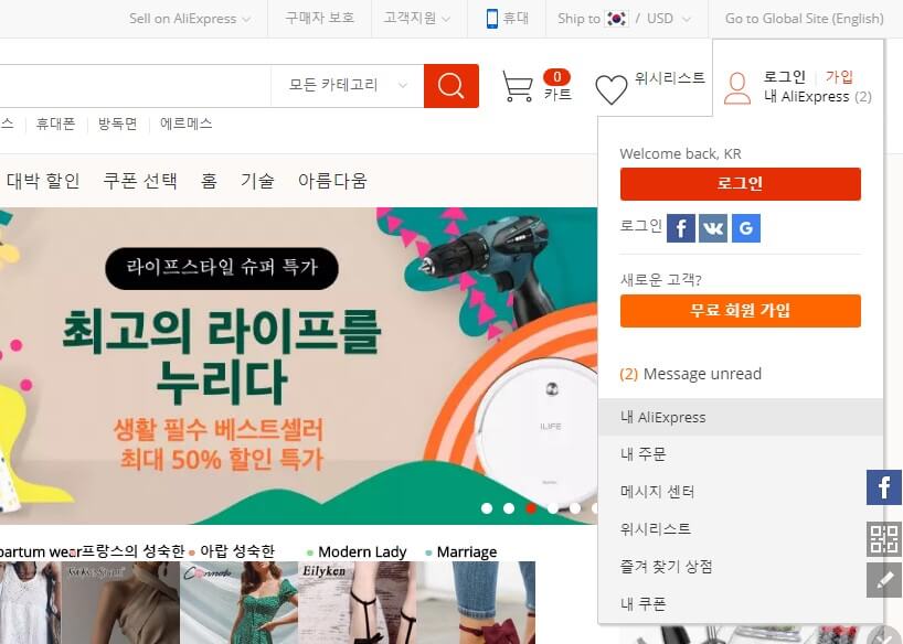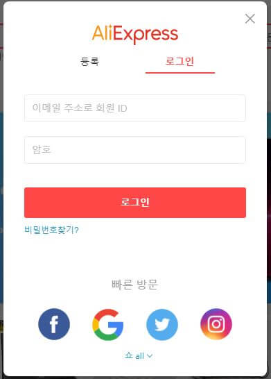 알리익스프레스는 회원가입이 아주 쉬워졌습니다.