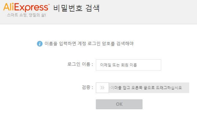 알리익스프레스는 비밀번호를 찾는 것이 아니라 새로 재설정 하는 것입니다.