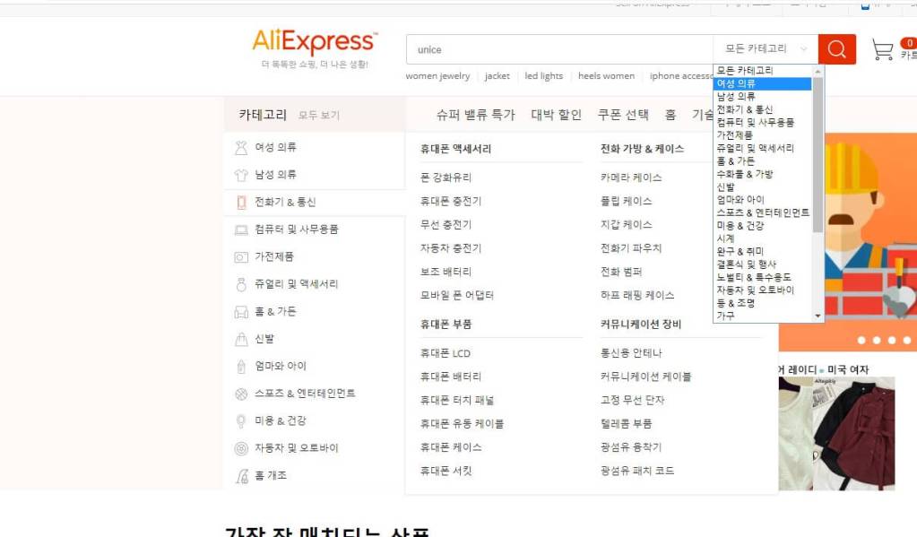 알리익스프레스에서 구매하고자 하는 상품을 검색하는 것은 2가지 방법이 있습니다.